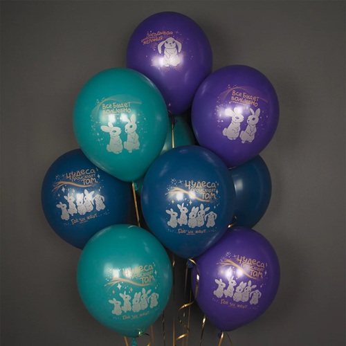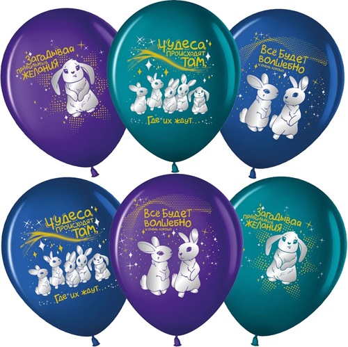 Воздушный шар Зайчики, Ассорти, пастель, 1 ст 30 см с гелием и обработкой Хай-флоат