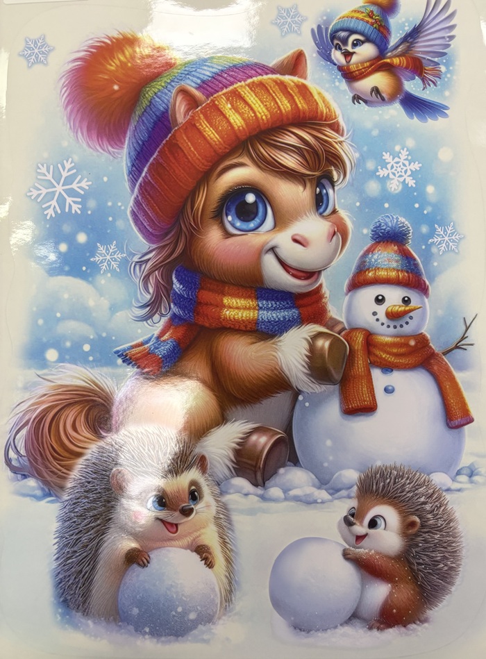 Двусторонняя наклейка "Пони и ёжики со снеговиком"